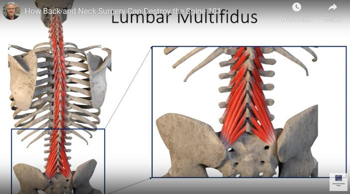 He also describes the multifidus muscles as “absolutely critical – everything you do requires these stabilizing muscles”. Without them the spine becomes unstable, potentially irritating spinal nerves and causing symptoms like leg pain.